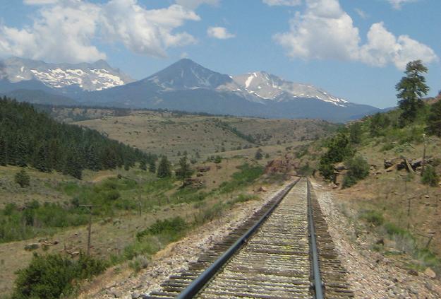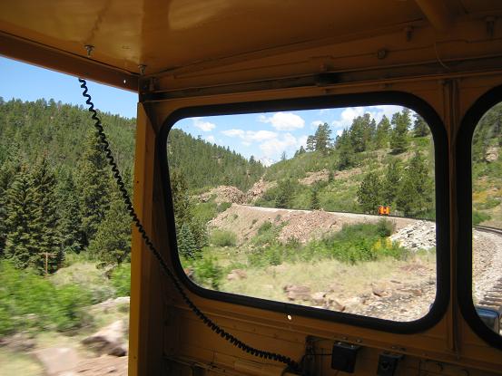 Approaching a grade crossing on the outskirts of Fort Garland.